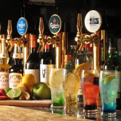 4種類の樽生ビールサーバー(パーフェクトサントリー、プレミアムモルツ香るエール、カールスバーグ、モルツ黒)・ワイン・自家製サングリアを設置!!飲みたいドリンクを自分で入れる楽しさがあります♪カクテルはバーテンダーが承ります♪